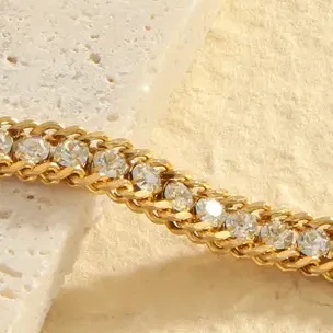 De stijlvolle goudkleurige armband van Diamond Shine voegt een vleugje luxe toe aan elke outfit. Met zijn schitterende ontwerp en verfijnde afwerking is deze armband perfect voor zowel formele als informele gelegenheden. Het glinsterende goud laat de armband opvallen, terwijl het delicate ontwerp elegantie uitstraalt. Of je nu een avondje uit gaat of een casual outfit wilt opfleuren, deze armband is de ideale keuze voor de moderne vrouw. Voeg deze prachtige goudkleurige armband van Diamond Shine toe aan je sieradencollectie en geniet van de complimenten die je zult ontvangen!